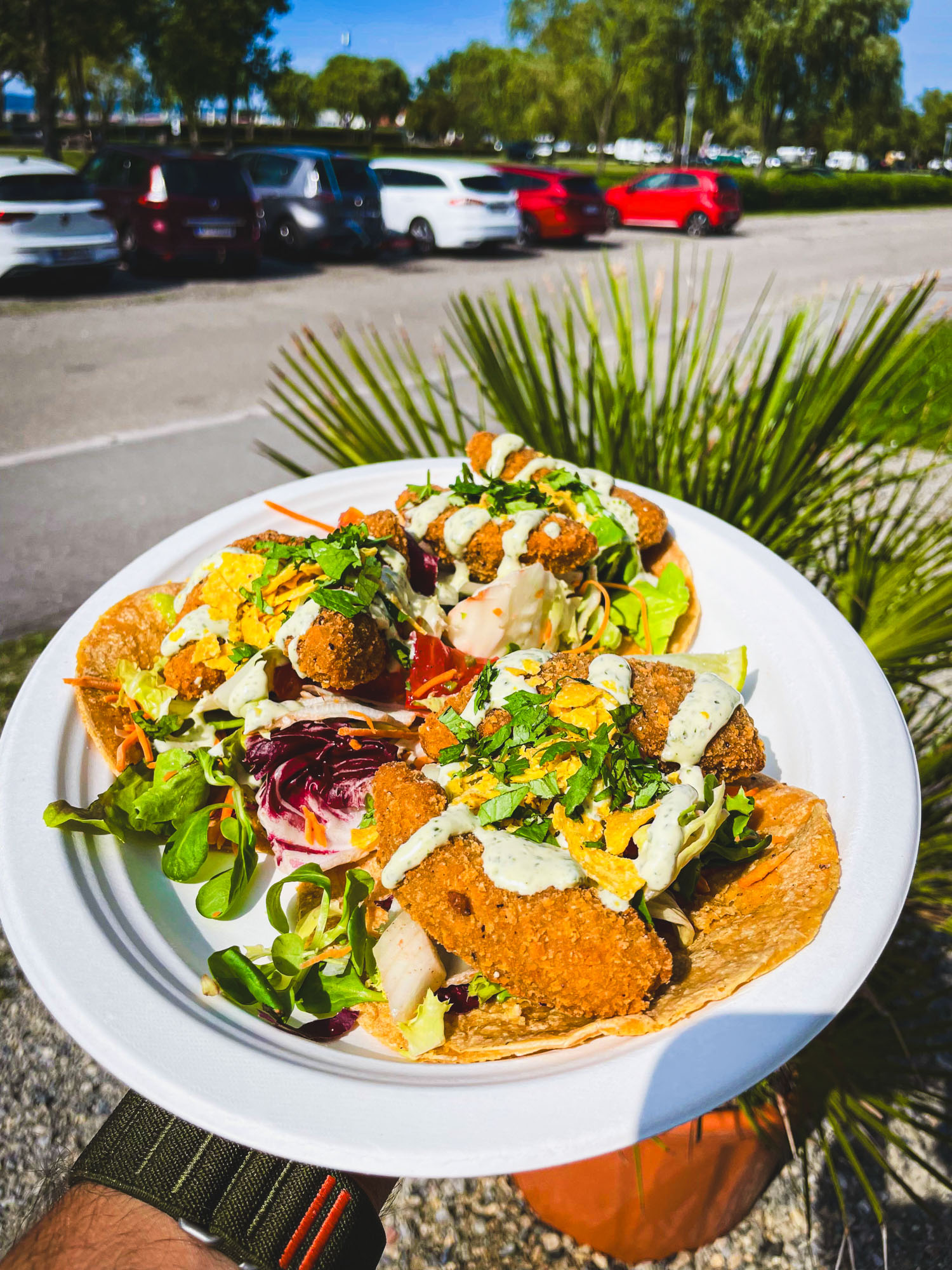 FRITTIERTER HALLOUMI * GUACAMOLE * SALAT * PICO DE GALLO * FRISCHER KORIANDER * MANGO CREMA * CRUMBLED TORTILLACHIPS