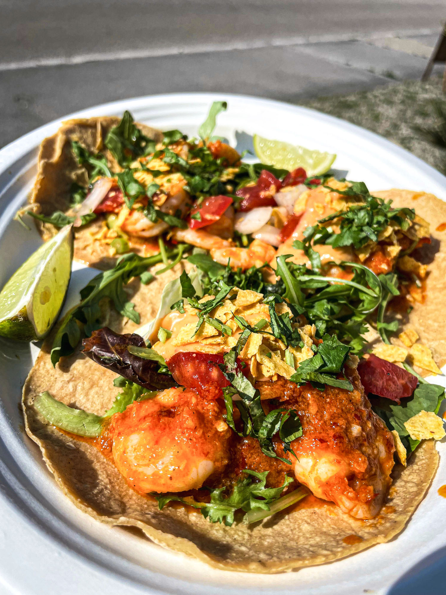 GEBRATENE GARNELEN * SALAT * PICO DE GALLO * FRISCHER KORIANDER * CHIPOTLE AIOLI * CRUMBLED TORTILLACHIPS